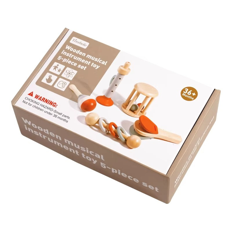 5 Pcs Wooden Baby Rattle Set – Natural Musical Toys for Infants